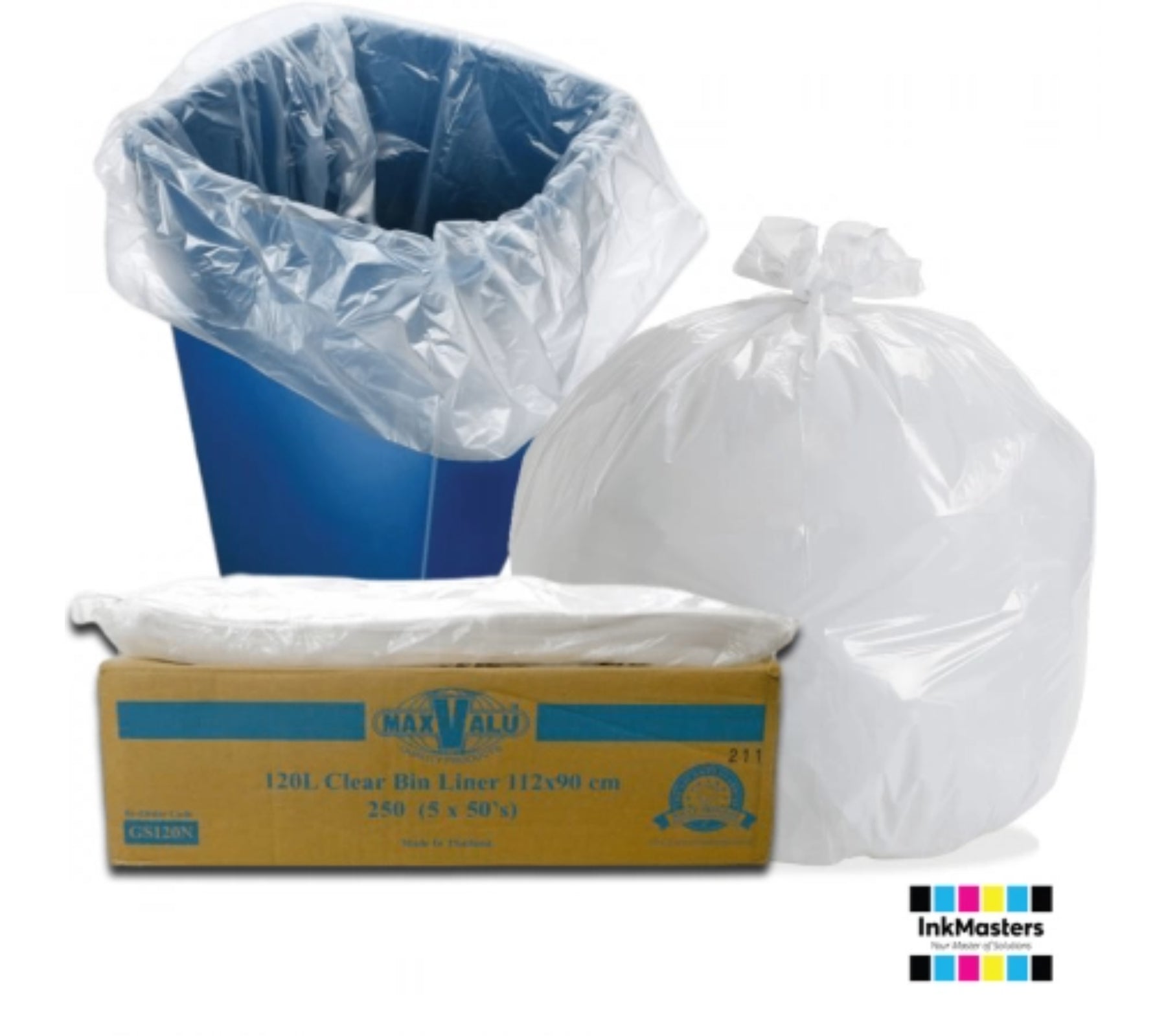120L Clear Heavy Duty Refuse Sacks / Bin Liners, 5x50 Rolls (250 Garbage Bags)