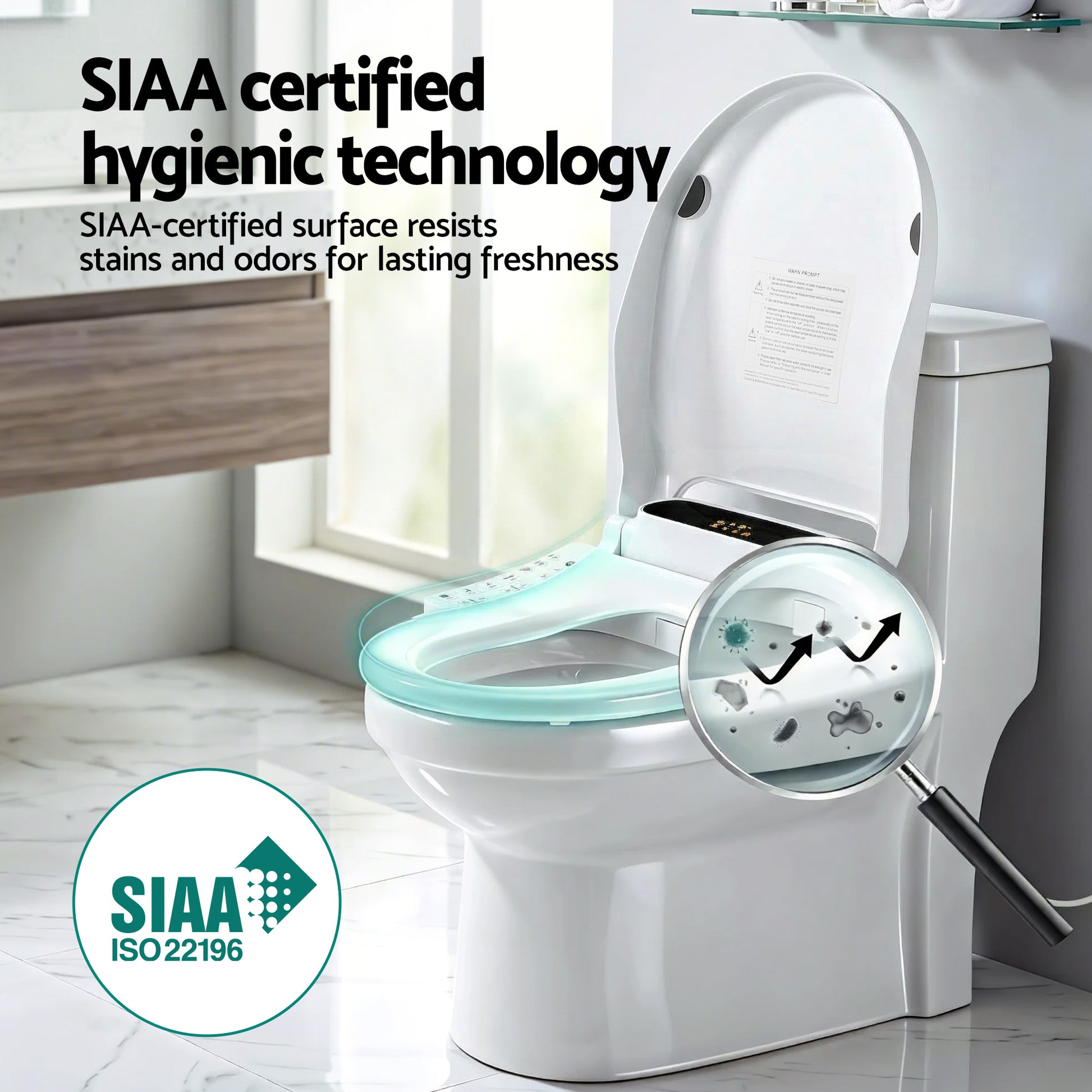 Experience the next level of bathroom comfort with the Cefito Smart Bidet Toilet Seat. Featuring a modern LED screen display, it allows you to easily monitor water and seat temperatures at a glance. Fully WaterMark and SAA certified, this seat offers an SIAA approved hygienic surface and a self-cleaning stainless steel nozzle. Enjoy a luxurious clean with a 4-level heated seat, warm air dryer, and specialised wash modes for the whole family.