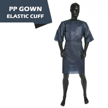 TGA Approved PP Disposable Short Sleeved Patient Gown Blue With Ties - 100 Pcs